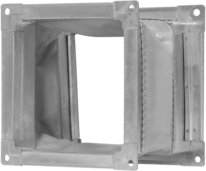 Гибкие вставки состоят из двух фланцев (круглых/квадратных/прямоугольных) с отверстиями для присоединения к воздуховодам и всасывающему (нагнетательному) патрубку вентилятора, которые соединены между собой гибким виброизолирующим материалом (ПВХ, стеклоткань, силикон).